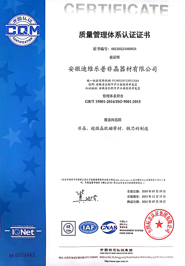 日前,安徽迪維樂(lè)普非晶器材公司接到巴西一客戶(hù)視頻電話,中方打樣的精密互感器鐵心性能滿(mǎn)足設(shè)計(jì)要求。巴西客戶(hù)開(kāi)心的說(shuō):在中國(guó)好不容易找到一家能做出這款產(chǎn)品的企業(yè),真的不簡(jiǎn)單!